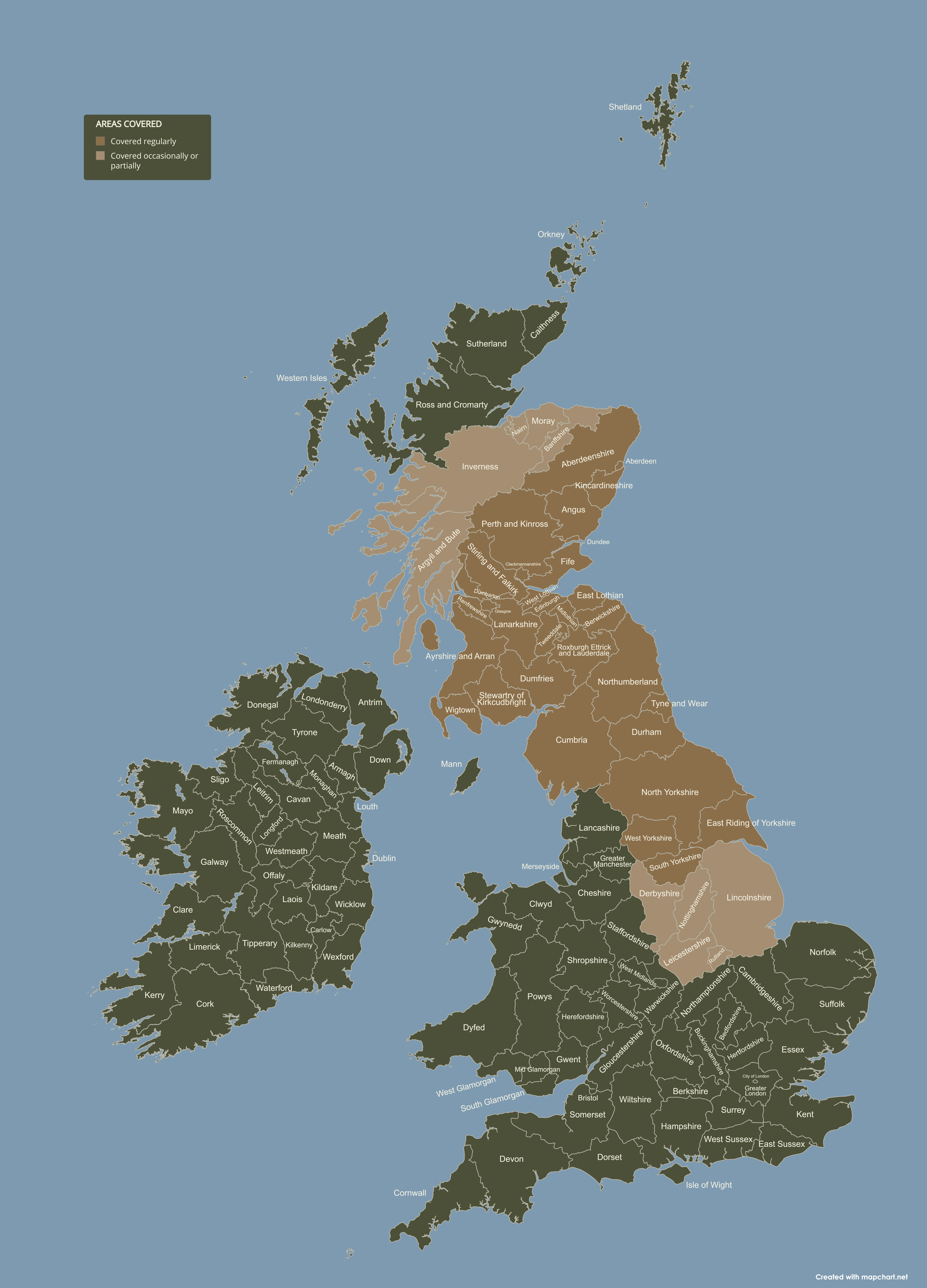 Postcodes AB, CA, DD, DE, DG, DH, DL, DN, EH, FK, G, HG, HU, KA, KY, LE, LN, LS, ML, NE, NG, NN, PA, PH, S, SR, TD, TS, WF, YO